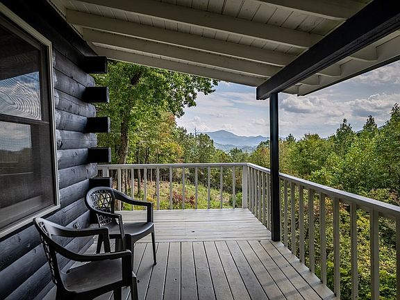 Perched atop your own private mountain, this handcrafted log sanctuary commands nearly four acres where silence reigns and hawks soar overhead. This portal to mountain living offers mornings with sweeping mountain vistas beyond your coffee cup and evenings under unmarred starlit skies. The artisan-built timber structure breathes with mountain rhythm, featuring a heart-warming great room with secret reading nook, chef's kitchen crowned with stone surfaces, and flexible main-level bedroom. Upstairs reveals a sprawling master suite where vaulted ceilings and windows frame the Blue Ridge like living artwork. Your outdoor realm includes a crackling fire circle for starlit gatherings and winding forest paths to secret camping clearings. Modern conveniences hide discretely: reliable heating, updated systems, and contemporary appliances blend seamlessly with authentic charm. Positioned where North Carolina kisses Georgia, you're close to mountain culture and trailheads yet removed enough that owls are your closest neighbors. This rare gem offers absolute privacy wrapped in natural splendor.
