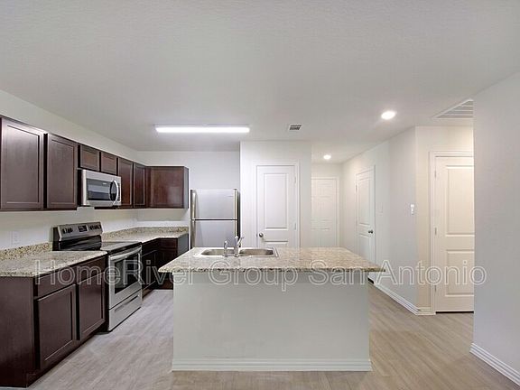Beautiful home located in San Antonio, Texas, featuring 3 bedrooms, 2 bathrooms, an open concept floor plan, attached two car garage and many more modern amenities throughout. The kitchen boasts a large island with upgraded countertops and energy-efficient appliances. Private master includes ensuite bathroom and walk-in closet. Smart home technology includes a programmable thermostat, keyless smart locks connected and smart home hub come standard. All these features and more make this home a must see! All HomeRiver Group residents are enrolled in the Resident Benefits Package (RBP) for $44.95/month which includes a convenient option for renters insurance, HVAC air filter delivery (for applicable properties), credit building to help boost your credit score with timely rent payments, $1M Identity Protection, move-in concierge service making utility connection and home service setup a breeze during your move-in, our best-in-class resident rewards program, and much more! More details will be provided upon application. Pets are Accepted on a case-by-case basis with approval and payment of applicable fees. $300 non-refundable pet fee per pet, $25 mo/rent, and pet screening fee per pet prior to move-in.For more information, please review our Application Qualifying Criteria and Pet Guidelines prior to applying. $75 application fee/adult, a $150 administrative fee due at move-in. Tenants are responsible for utilities and yard care. HomeRiver Group has partnered with Rhino to offer an affordable alternative to upfront cash security deposits. Approved residents can choose between paying a security deposit equal to one (1) months rent OR purchase a deposit replacement policy with Rhino at a fraction of the upfront cost. Images may be reflective of a staged or representative unit; homes are unfurnished and features may vary by floor plan and location.