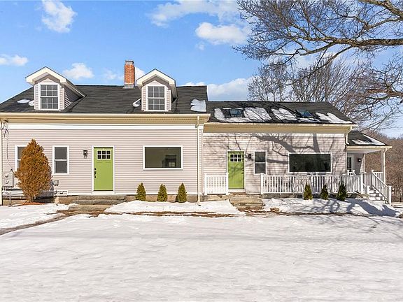 Welcome to this charming farmhouse-style home, meticulously renovated from a two-family to a spacious 4 bed 2 1/2 bath single-family residence. Set on a serene 5.88-acre lot, this property blends modern luxury with rustic character. Step inside to an inviting, open-concept layout featuring brand-new floors, large windows that flood the space with natural light, and high-end finishes throughout. The newly renovated kitchen is a chef’s dream, with custom cabinetry, top-of-the-line appliances, and plenty of counter space for meal prep and entertaining. This home boasts all-new electrical and plumbing systems, plus a brand-new septic system for four bedrooms, ensuring long-term durability. For convenience, you'll love the mudroom—ideal for kicking off your boots after a day outdoors. Outside, enjoy nature on your large deck, perfect for relaxing or entertaining while watching deer and other wildlife pass by. The home is wrapped in brand-new siding, giving it a fresh, modern look. With ample parking space, hosting guests or storing vehicles is a breeze. The property also includes two barns, offering additional storage or workspaces. The 5.88-acre lot provides plenty of room for outdoor activities, gardening, or simply unwinding in your own private oasis. This home combines modern amenities with the tranquility of country living. Don’t miss the chance to make this beautifully renovated farmhouse yours!