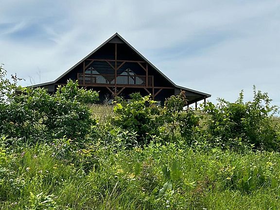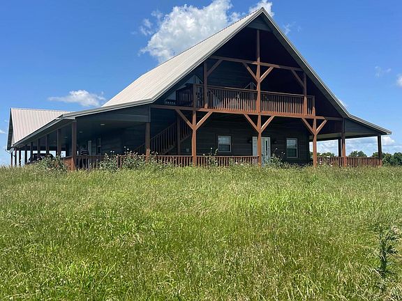 Large acreage with newer house for sale in Squires Mo. Missouri-Saddle Ranch is near Ava, Mo. Passing through secure large gates you will find 277 acres of 3/4 grass, and 1/4 wooded. There is excellent fencing and cross fencing with welded metal corners & gates, great working corrals & runways. This property has several outbuildings, near new colored metal barn (56x40), large covered pole barn, sheds, & an older milk barn. The land has a spring branch that flows through the property, 2 large ponds/lakes. The main cabin style house was built in 2015 with concrete siding and is a luxury cabin. There is a 3-car carport to keep you out of the weather! The home features 1600 sq ft with 2 bedrooms, 2 baths, hardwood floors, cedar trim, cedar stairs, granite counter tops, , large open kitchen/dining area with ample white cabinets, and appliances stay including washer and dryer. The kitchen/dining area has 24' ceilings with a lovely stairway leading to a great office area, artist sanctuary, or a 3rd bedroom if needed. On 3 sides of the house, there are 10' wide covered porches. Outside there is a staircase that leads to a 25x9 covered deck which leads into the upstairs loft area. All this with a beautiful view of the entire ranch. Traveling down the rock chatted driveway, in the valley there is an older log sided house with 3 bedrooms, 1 bath, tile floors and a fireplace. It needs some work, but very fixable. This lovely home is only a few miles from Bull Shoals Lake, national forest, and Mtn Home AR. This is a great ranch ready for cattle or horses! There are not restrictions so your options are endless.