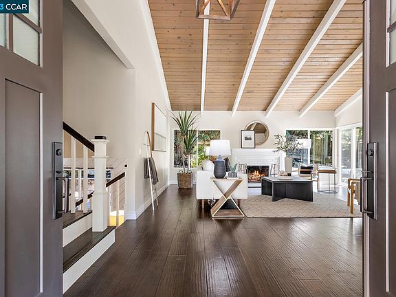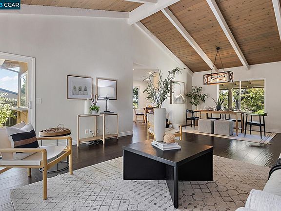 This gorgeous home in the desirable Ygnacio Hills neighborhood offers it all: views of the hills, access to Lime Ridge trails as well as the privacy of being on a cul-de-sac. The moment you walk in the front door, you feel the expanse of the open floorplan with high ceilings and sightlines that attract you to the backyard. The kitchen, dining room, and over-sized living room flow out to the backyard which offers a patio for outdoor dining with views of the hills, a seating area to entertain guests, a firepit, new lawn, a hot tub and a chicken coop. The kitchen boasts stainless steel appliances, granite countertops and a breakfast nook with extra storage. The fireplace in the living room provides the perfect place to cozy up on a fall evening. The downstairs family room offers an array of options (kids' playroom, home office, etc). You will also find a half bathroom, the laundry room and access to the garage on this level. Upstairs, you will find the private primary suite with an ensuite bathroom and walk-in closet. The other 2 spacious bedrooms provide sliding glass doors to the shared balcony – an ideal spot for enjoying the sunset or use it as a play area for kids. This property has it all!