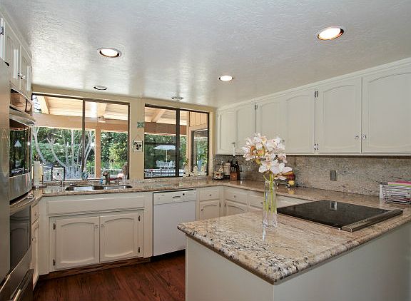 Lovingly maintained home built in 1975. Views across the front to the East Bay hills. Beautiful grounds w/ separately fenced pool, arbor-covered picnic area & level lawn. Vaulted & cathedral ceilings, floor-to-ceiling walls of glass. Spacious living room, formal dining room, updated granite kitchen, family room & huge recreation room