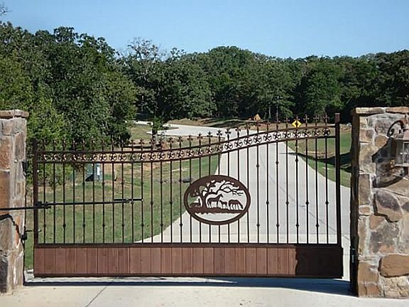 Resort style living in beautiful gated community on 5 acre wooded lot.Bring your horses. Community is adjacent to Isle de Bois State Pk on Lake Ray Roberts,which gives access to miles of State Park trails for horses,biking,hiking!Development features large covered arena,underground utilities,concrete streets.Tremendous property tax savings with wildlife exemption!Texas' first and only development with granted access to State Park trail system.