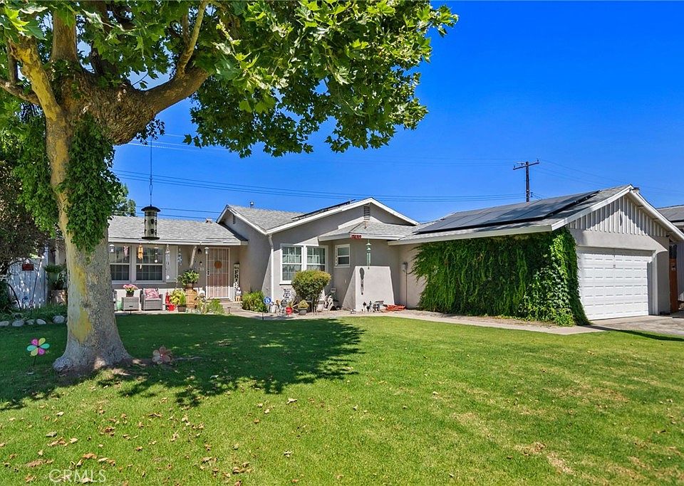 Welcome to your dream home where charm, comfort, and modern style meet! This beautifully maintained residence boasts undeniable curb appeal with a fully landscaped front yard that invites you in with lush greenery and thoughtful design with SOLAR. Step inside to a spacious living room that’s perfect for relaxing evenings or entertaining guests, full of natural light and warmth. The home offers three generously sized bedrooms, each providing plenty of space for restful nights and personal retreats. You’ll find two full bathrooms, tastefully appointed for both functionality and style — ideal for busy mornings or unwinding at the end of the day. Gleaming wood floors run throughout the entire home, adding timeless elegance and easy maintenance to every room. The updated kitchen is a true standout, featuring modern finishes and ample counter space to inspire your inner chef — whether you’re preparing a quick breakfast or hosting a dinner party. Step outside to your fully landscaped backyard oasis, complete with a cozy firepit — perfect for gathering with family and friends under the stars. Additional highlights include a two-car garage offering convenience and extra storage, as well as ceiling fans throughout the home to keep you comfortable year-round. Conveniently located near freeways and shopping. This move-in ready gem truly has it all — style, functionality, and spaces designed for making memories. Don’t miss your chance to call it home!