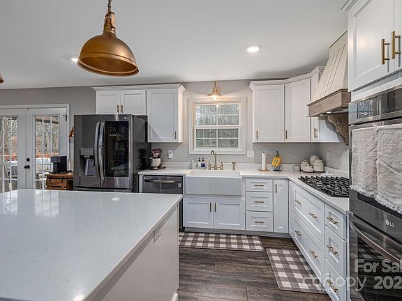 Welcome to this charming ranch-style home nestled on a picturesque 3.77-acre lot, blending timeless elegance with modern comforts. The inviting front porch is the perfect spot for morning coffee or unwinding in the evenings, while the back deck offers additional space for entertaining and enjoying serene views of the surrounding landscape. Inside, luxury vinyl plank flooring flows seamlessly throughout. The open-concept design connects the spacious living room, dining area, and kitchen—an ideal layout for gatherings and everyday living. The kitchen is a chef’s delight, highlighted by a stunning island with barstool seating, white quartz countertops, and stainless steel appliances including a fridge, dishwasher, gas range, and double oven. The owner’s suite is a true retreat with a large bedroom, walk-in closet, and a spa-inspired bathroom complete with double vanity sinks, a freestanding soaking tub, and a spacious standing shower. Perfectly situated, this property offers the peace of country living while remaining convenient—just 20 minutes to Lincolnton, under 30 minutes to Hickory, and about an hour to Charlotte Douglas International Airport.