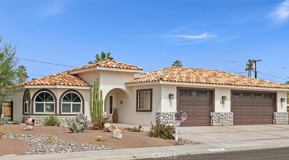 You aren’t interested in this home because it checks all the boxes. Yes, it has four bedrooms, two bathrooms, solar panels, and a three-car garage finished with storage that could make anyone envious. But that’s not why you’re drawn to it. You’re interested because this home feels like an embrace—warm, textured, and rooted in something deeper than square footage or features. Step inside and the Spanish charm immediately sets the tone. Tile floors cool beneath your feet, archways framing spaces where life naturally unfolds. The dining room is wide and soaring, with plantation shutters that filter the light just so, as if reminding you to slow down and notice the details. Every corner whispers of care, of thoughtful upgrades layered year after year by owners who loved this place enough to nurture it. The primary suite isn’t just a bedroom—it’s a retreat. A walk-in closet with a custom organization system stands ready for the life you’re already envisioning. Both bathrooms gleam with newly remodeled showers, spaces that feel modern yet timeless, a balance struck perfectly. But it’s when you slide open one of the many doors to the backyard that you understand. This isn’t just property; it’s possibility. The sparkling pool and spa invite both laughter and quiet reflection. The covered patio begs for long summer dinners and morning coffee rituals. The landscaping, smart and water-efficient, frames it all without demanding too much of your time—leaving you free to live. This home is a rare mix: old-world Spanish character blended seamlessly with modern convenience and energy efficiency. A house that doesn’t just stand still—it gives back, with solar panels quietly working in the background, lowering bills and lessening your footprint. You don’t come here for the noise of the world. You come here to create your own. To gather. To rest. To celebrate. This is more than a house in Palm Desert. This is a retreat, a sanctuary, and perhaps, the next chapter of your story.