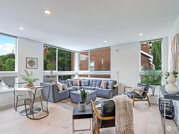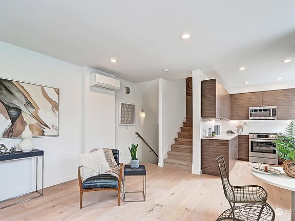 Look no further! Gorgeous Isola Homes townhome offers quality finishes & thoughtful design. Enjoy huge, light-filled windows + a desirable great-rm concept boasting high ceilings & gorgeous wide plank wood floors. Modern kitchen provides plenty of counter/cab space including a gas range. On the main level you will find an office/BR with full bath, perfect for guests. Upstairs the primary enjoys a spa-inspired bath & large walk-in closet. Spectacular rooftop view deck comes complete w/gas stub-out. Additional features: A/C mini-splits, honeycomb blinds, under cab lighting & private patio. Designated parking in front of unit. Phenomenal location just minutes to Green Lake, restaurants, shopping & freeways. Incredible opportunity!