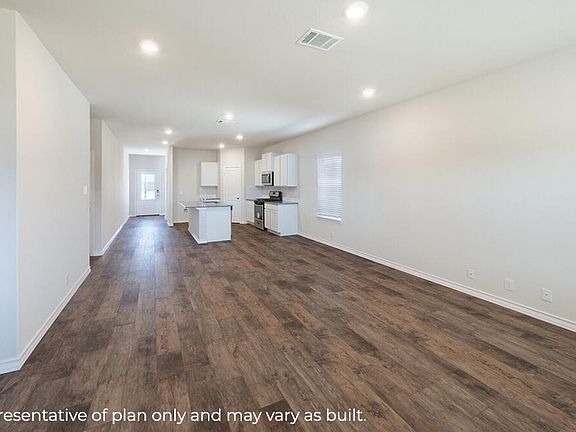 The Dawn is one of our one-story plans featured in the Terra Vista community in Lubbock, TX. Featuring 3 bedrooms, 2 full bathrooms, and a spacious 2-car garage. The open concept layout includes a bright kitchen with an island that overlooks the dining and family rooms, perfect for entertaining. The primary bedroom is complete with its own attached bathroom, featuring granite counter tops, and a spacious walk-in closet. Two additional bedrooms are near a full bath ideal for guest or family. A covered patio extends your living space outdoors, and the utility room is conveniently located just off the kitchen. Images are representative of plan and may vary as built.