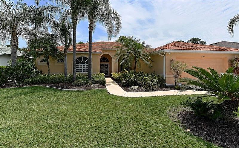 Outstanding custom-built Manchester model 3BR/2 and 1/2 baths, office, family room 1/2 bath & shower in the pool area. Centrally located in Stonebridge on Palmer Ranch. This beautiful 2,605sq.ft. pool home has 11 foot ceilings with 20" ceramic tile throughout home with carpet in the bedrooms. The living & dining room have crown mouldings. All window treatments & blinds remain. The living room looks out to the new quartz re-surfaced heated pool with new tiles & coping & new brick pavers on lanai,looking out to wooded back yard. Large covered lanai, great for entertaining. Outdoor shower by pool bath. Newer stainless steel kitchen appliances. Silestone hard surface on counters, breakfast bar & pass thru. Double pantry, newer tiled backsplash. The large master bedroom with access to the pool features two walk-in closets with built-ins and Jacuzzi tub in the master bath with double vanities and newer sinks, counter, cabinet and tiled shower. Guest bath has granite counter top. Laundry room has built-in custom cabinetry with new clothes dryer. New AC system in 2015 and invisible fence for pets in yard. House has been re-plumbed. Great community with large heated community pool. Excellent schools with school buses stopping at the Stonebridge entrance & bus stop for Pineview. Close to shopping and restaurants & 12 mile Legacy Trail for biking/ walking, state-of-the-art YMCA & Culverhouse Nature Park and garden. Just minutes to Siesta Key beach!