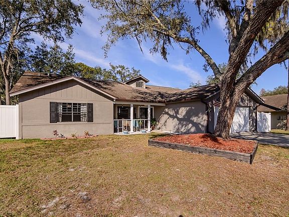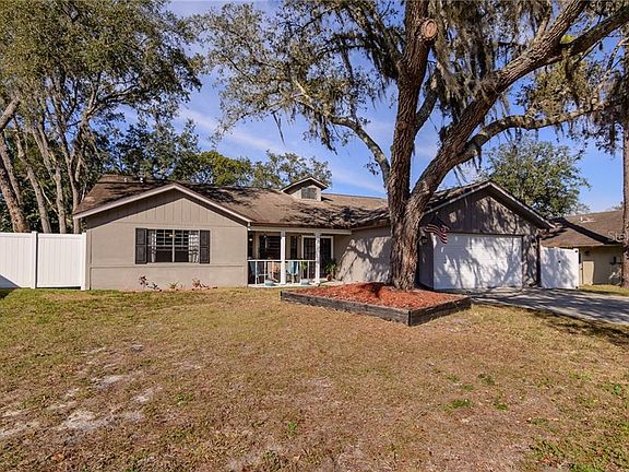 Don't sleep on this one folks! This wonderful 3/2/2 home with great room floor plan boasts a massive 1,940 sqft of living with Kitchen/Family combo with a wood burning fireplace. The Kitchen features a skylight and newer stainless appliances. Through the sliders is a oversized covered/screened porch to a large backyard with PVC fence... very peaceful and quite. This home features a split floor plan, private living or dining room with wood laminate. Tile throughout and carpet in the bedrooms, Master bedroom is its own suite with walk in closet, double sinks and shower. Inside laundry room with wash sink. The entry features double wood doors and a lovely covered patio. Sinkhole repaired in 2010 and completely insurable.
