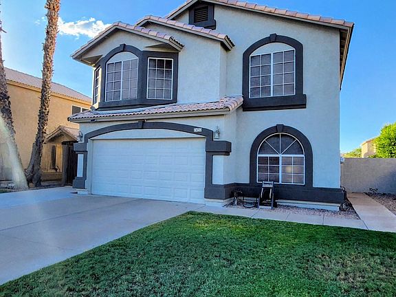 Stunning 4-bedroom, 3-bath home in Mesa offering style, comfort, and functionality. The kitchen is a chef's dream with generous counter space, rich dark cabinetry, a center island, and modern appliances. Upstairs, a spacious loft provides the perfect flex space! ideal for a playroom, game room, or secondary living area. The primary suite is designed for relaxation with a luxurious bath retreat. Step outside to your private backyard oasis featuring a sparkling pool and an extended covered patio, perfect for year-round Arizona living. Just steps away, enjoy a large greenbelt with a playground and shaded gazebo. This home truly has it all...see it before it's gone!
