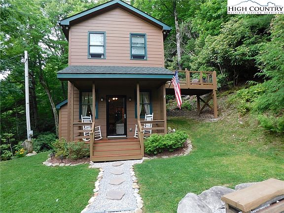 Beautiful craftsman home is perfect mountain retreat. Plenty of outdoor space to relax and enjoy the mountain air. Follow the driveway to a key pad entry gate and into an open setting with a fire pit, picnic area, gardens, carport and shed. The car port has automatic lighting. The home has wood floors and T&G walls and ceilings throughout. First floor has a gas log stone fireplace, living room, dining, updated kitchen, pantry, and laundry area. Second floor has 2 bedrooms and a full bath. The primary bedroom has a side porch overlooking the yard. Located near Linville Falls, Blue Ridge Parkway, Grandfather Mountain, and Ski Slopes.
