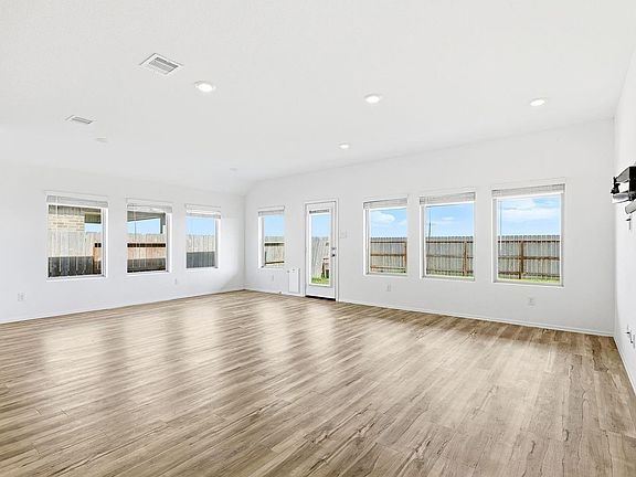 A beautifully designed one-story home offers the perfect blend of modern comfort and open-concept living. With a covered patio and no back neighbors, it provides rare privacy and serenity—ideal for quiet mornings or entertaining guests in peace. Inside, the home is illuminated with natural light thanks to the large windows throughout, creating a bright, airy atmosphere. The heart of the home is a gourmet kitchen featuring a large island with bar seating, perfect for all occasions. The kitchen boasts sleek cabinetry, modern appliances, and plenty of counter space—making it both functional and stylish. The open floor plan connects the kitchen seamlessly to the dining and living areas, all anchored by tall ceilings and clean, contemporary finishes. The design masterfully provides a split bedroom layout providing tranquility and privacy for all. This home is ideal for anyone looking for single-story living with modern style, privacy, and a bright, welcoming atmosphere.