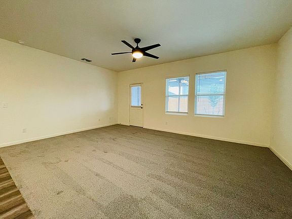 The master bedroom includes a large walk-in closet and a private bath with a modern shower (no tub) for a sleek, functional touch. Ceiling fans in every room provide comfort year-round.