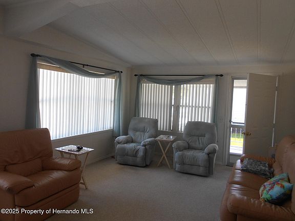 I have the one for you! This beauty is a 2- bedroom 2- bathroom fully furnished open floor plan tape and texture walls. Year-round FL glass room the whole length of the house. and a Fl room with vinyl windows. Cathedral ceilings island kitchen, wet bar. fenced yard. On the right side of the home there is an open garage for storage or golf cart. Light and bright motivated seller. Please bring seller offers.