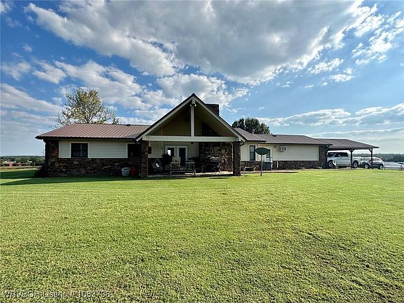 Here is the property for you, offering a million-dollar view! 81.86 fenced acres, with 3 ponds, surround this Immaculate, conditioned 2310 square foot home. 3 Bedrooms, 2 bathrooms, 2 living areas with a covered porch and patio. There are numerous outbuildings for storing farm equipment and other items. These buildings include a metal storage shed, a 500 x 40 barn, 2 hay barns, a little storage shed, pole barns, and a corral for cattle. The storage building behind the house is insulated and wired for electricity. The electricity just needs to be run to the building.