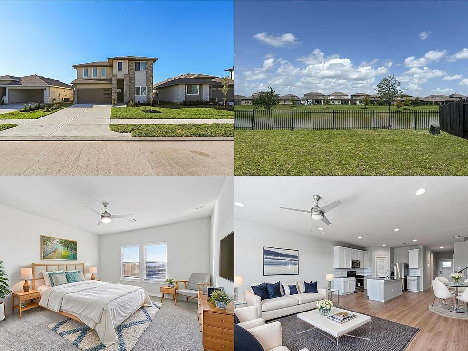 Welcome to 7434 Rivercane Shores Lane, a charming 4-bedroom, 3-bathroom home located in the desirable Grand Vista community of Richmond, Texas. This beautifully maintained residence features an open floor plan with high ceilings and luxury vinyl plank flooring, creating a warm and inviting atmosphere.
