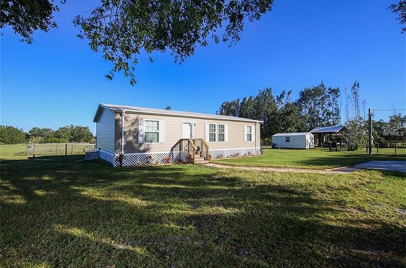 Fantastic opportunity to purchase a 3 bed, 2 bath home on 5 acres in Myakka City, Florida. This home has many updates to include the kitchen and master bath. The kitchen features gorgeous dark wood cabinets, laminate flooring and a cozy eating space that overlooks into the living room. The master bedroom has an ensuite garden bath with separate shower along with upgraded features. The 2nd and 3rd bedrooms are situated across from the master with it's own full bath. There is also a utility room conveniently located off the kitchen with access to the back of the property. There are 2 stalls with room to convert 2 more stalls. This spot is currently used for RV/mower parking. You'll also get a 10x20 shed, 30x100 chicken run with coupe and a 10x15 pig pen and a barn cat. This property is completely fenced and ready for horses or other pets. Plenty of space for a huge garden as well. There is a pond at the back property. If you're ready to live in the peaceful country, this is the home for you. You'll only be approximately 20 minutes to Lakewood Ranch for shopping, dining, entertainment and recreation. No CDD and No HOA.