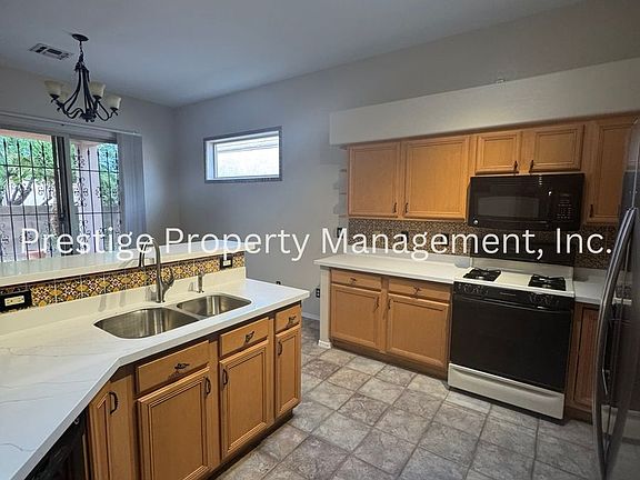 Welcome to this stunning 3-bedroom, 2-bathroom home located in the heart of Tucson, AZ. Nestled within a secure gated community, this property offers a blend of comfort, style, and convenience. The home features a double garage, providing ample space for your vehicles and storage needs. Step inside to discover all hard flooring throughout, adding a touch of elegance and ease of maintenance. The master suite boasts a large walk-in closet, offering plenty of storage space. The eat-in kitchen is perfect for casual dining, while the formal dining/den area provides a versatile space for entertaining or working from home. Cozy up by the fireplace on cooler evenings or step outside to the covered patio, a perfect spot for outdoor relaxation. As a resident, you'll have access to three community pools, perfect for cooling off during the hot Arizona summers. Plus, front yard landscaping is included, adding to the hassle-free lifestyle this home offers. Experience the perfect blend of luxury and convenience in this beautiful Tucson home.