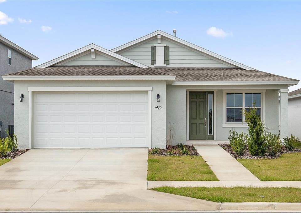 PREMIUM LOT! Come check out this lovely 2022 Currant model located in the desirable Calesa Township gated subdivision. This 3-bedroom, 2-bathroom home features high ceilings throughout with several upgraded features, including plumbing for a sink in the garage, washer and dryer added to the indoor laundry room, stainless steel kitchen appliances, upgraded cabinets with crown molding, quartz counters throughout along with lovely subway tile backsplash. This is a split-bedroom plan with a living room as well as a family room with an extended covered lanai at the back of the home. The location of this home is among one of the best as it is positioned directly across from the pool and playground area. The Calesa Township subdivision features not only the community pool and playground area but also extensive trails for hiking, soccer fields, basketball courts, a dog park, and much more to keep you and your family occupied.
