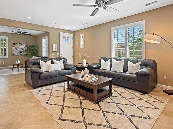 Are you seeking a luxuriously upgraded and fully-furnished 2BR/2BA home with a versatilebonus room/potential 3rd bedroom? Look no further than 74358 Millenia Way! Picturesquely nestled in the gated, master plan community of Genesis, this stunning 1,650+ sqft home affords a leisurely lifestyle with a plethora of resort-style amenities. Fabulously upgraded for a welcoming aesthetic, the residence charms with Craftsman-inspired architecture, striking Mexican fan palms, and beautifully enhanced landscaping.Experience elevated living with an entertainment friendly interior. Boasting an open floor-plan and gorgeous furnishings, there is an abundance of space for relaxation and hosting guests. Even the open concept gourmet kitchen has a breakfast bar island for additional seating.For alfresco feasts, enjoy the possibilities of the private enclosed backyard, which has an expansive covered patio and a greenspace. Venture to the community pool for fun-in-the-sun and friendly conversation, or pop over to either dog park for pup-playtime!After a long day, unwind in the primary bedroom with the luxuries of a walk-in closet and spa-like en suite featuring a zero-entry shower. One extra bedroom dazzles with a Murphy bed, whilethe bonus room is perfect for an in home gym, game room or can easily be converted to a third bedroom. In addition to countless upgrades, the home is conveniently situated minutes from I-10 for quick commutes and easy shopping.Come see today, and get the exclusive advantages of being the newest resident of Genesis.
