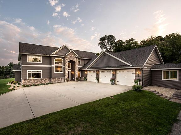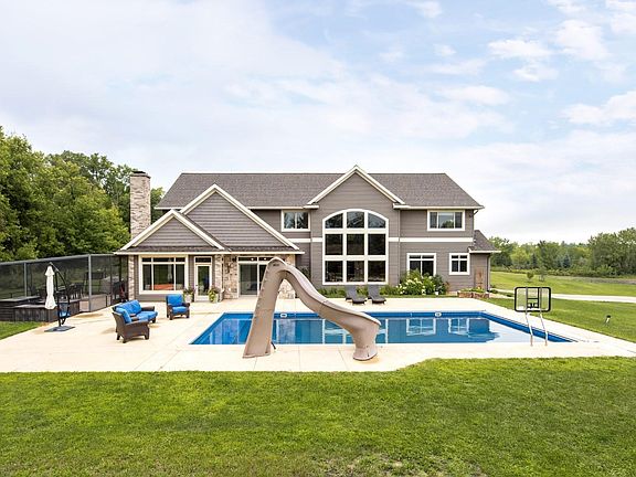 Introducing a Modern Luxury Masterpiece! This custom-built estate redefines elegance and comfort across an expansive 10+ acres. Spanning over 6,000 sq ft, every inch of this home showcases meticulous design, blending sophistication with functionality. With 6 bedrooms, each featuring walk-in closets, and 4 baths, including dual Owners' suites, this home is crafted for the discerning homeowner. Experience unparalleled energy efficiency with a 20.4KW Solar Panel System, a brand new Geothermal HVAC system (installed in 2024), a Halo Air Purifier, and a Full House Humidifier. The Great Room's fireplace, Poolside Porch, and Sunroom create inviting spaces for relaxation and entertainment. The elegant kitchen is a chef's dream, boasting maple cabinetry, granite countertops, an island, breakfast nook, wine wet bar, and a spacious walk-in pantry. The bedrooms offer en-suite baths and lit closets, ensuring privacy and luxury at every turn. The Man Cave/Game Room, measuring an impressive 44x27, includes a kitchenette and wet bar, perfect for hosting. The grand 60x50 garage, with 6 stalls, 16' walls, and an RV door, provides ample space for vehicles and storage. Outdoors, the elite heated 42x20 pool, screen porch, and hot tub hookup create a private oasis. Security is paramount with a full security system, a paved driveway, and a 32x40 barn, adding to the estate's allure. This is luxury, sophistication, and contemporary living at its finest. Your exceptional journey awaits—see the feature sheet for full details!