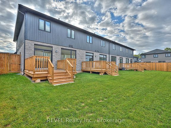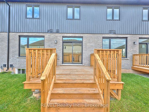 Welcome to Forestview Estates in Niagara Falls! This stunning townhome features 3 spacious bedrooms and 3 bathrooms, showcasing 9 ceilings, wide-plank hardwood floors, and a spacious open-concept main floor with large windows that flood the space with natural light. The modern kitchen boasts quartz countertops, a centre island, and custom cabinetry extended to the ceiling. The kitchen flows seamlessly into the living and dining areas with access to your private fenced yard and deck. Upstairs, enjoy the convenience of second-floor laundry and a bright primary retreat complete with a walk-in closet and ensuite featuring quartz counters and a glass tiled shower. 2 more bedrooms and a 3rd bathroom with double vanity, quartz counter and tub/shower insert complete this second level. The unfinished basement is ready for you to make it your own, offers opportunity or extra living space. Ideally located near schools, parks, shopping, and quick highway access, this home blends modern finishes with functionality in one of Niagara's most desirable communities.