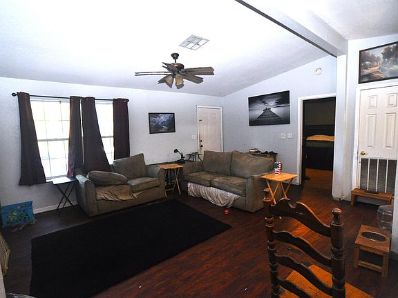 Get away from it all in this lovely 3 bedroom, 2 bath home in Okeechobee, FL! Nice, quiet neighborhood, fully fenced yard with 2 front driveway privacy gates, spacious great room, master bedroom & bath, and walk in closets in all bedrooms. Beautiful backyard with mature oak trees and new firepit area. Storage shed with 50 amp hook up for RV, outdoor security lighting and water filtration system to stay on property. Refrigerator on lease to own. On well and septic, no HOA! Home needs some TLC, ready for your personal touch!