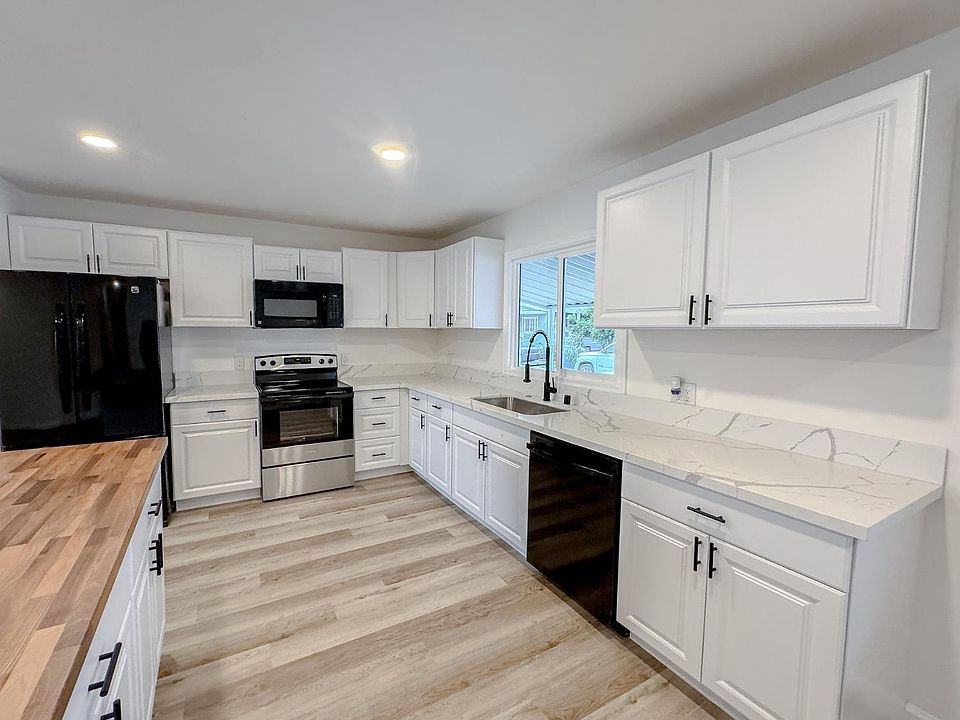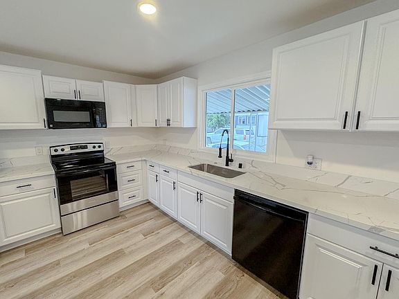 Beautifully remodeled and ready for its new owner! This spacious double-wide home, on a prime corner lot, combines a high-quality, modern design with everyday comfort. Step inside to a bright and open floorplan featuring a long list of upgrades including recessed lighting, upgraded vinyl plank flooring, and stylish two-tone paint with sleek black hardware. The brand-new kitchen is a showstopperwith quartz counters, upgraded cabinetry offering tons of storage, updated appliances and butcher block-style island with even more built-in storage below. With four bedrooms and two beautifully updated bathrooms, there's room for everyone. The oversized primary suite includes a luxurious bathroom with new shower and modern double vanities. Fully finished walls enhance insulation and reduce noise throughout. Outside, enjoy a spacious, fenced in yardperfect for pets! Community amenities include two pools, a clubhouse, playground, basketball courts, and open green spaces. Park approval required for offer acceptance. Owner-occupied onlyno rentals. Cash or mobile home loan only. SPACE RENT - $1,075/month.