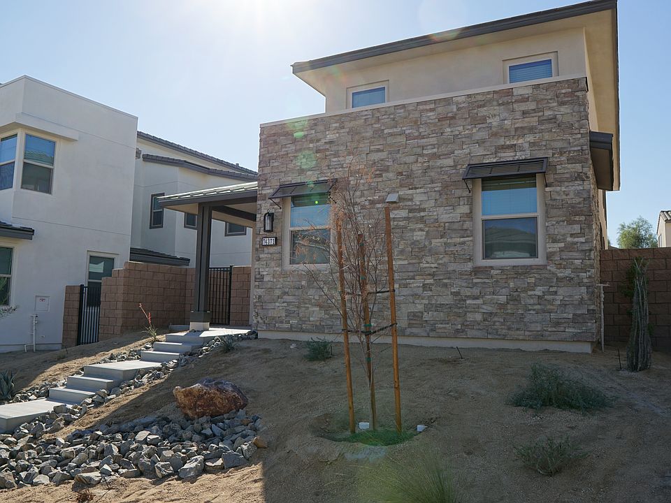 Discover modern living in this newer construction 3-bedroom, 2.5-bathroom home with a versatile loft, located in the sought-after University Park community of Palm Desert. Spanning 1,871 sq. ft., this contemporary residence is designed for energy efficiency, featuring solar panels, a tankless water heater, and an EV charger-ready two-car garage. The home comes fully equipped with a brand-new refrigerator, washer, dryer, ceiling fans, and window coverings. The spacious primary suite boasts dual vanities, a luxurious glass-enclosed shower, and a large walk-in closet. Upstairs, you'll find a convenient laundry room, two additional bedrooms, a full bathroom, and a flexible loft space perfect for work or relaxation. Residents of University Park enjoy access to The Grove's private pools, spas, and playgrounds, all while being minutes from Coachella Valley's best attractions. For more information or to apply, contact the property manager.