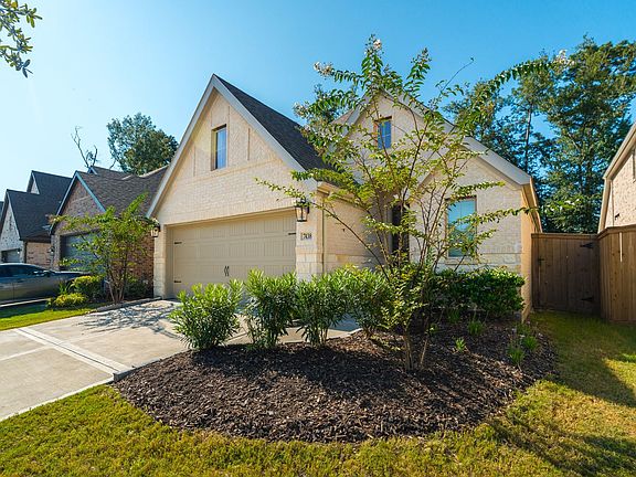 Welcome to this one story PERRY HOMES! Entry with 11-foot rotunda ceiling leads to open kitchen, dining area and family room. Modern open style Kitchen with Quartz countertop and generous island with built-in seating space features corner walk-in pantry. Primary suite includes double-door entry to primary bath with dual vanities, separate glass-enclosed shower and large walk-in closet. Home office with French doors set at back entrance. Large windows, extra closets and bonus mud room add to this spacious three-bedroom home. Two-car garage. Sprinkler system for a lush garden,  Garage door opener. Beautiful back view through the trees and trails. Don't miss the opportunity to live in The Highlands and enjoy the views of the 18-hole Golf course, Resort Pool, Water Park and Lazy river. Tennis & Pickle Ball Court. Fishing and kayaking lakes, recreation fields. 30 acres to hiking and biking through the trails and preserve and many more. WASHER, DRYER AND REFRIGERATOR!!!