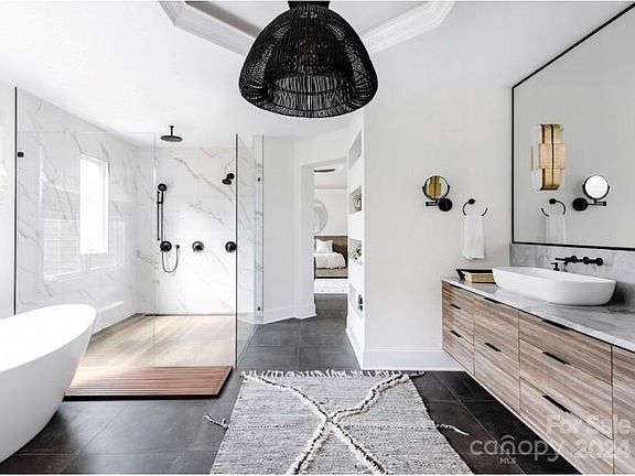Fully updated, custom Kingswood Home w/amazing outdoor living! Enter into your light & bright foyer w/office & dining room. The gourmet kitchen features top of the line chef’s appliances, quartz counters w/solid quartz backsplash & large island for plenty of prep space & extra seating. Kitchen opens to great room w/stone fireplace & vaulted ceiling. Continue upstairs to your primary suite w/fully renovated en-suite featured in House of Nomad design & custom expanded closet. There are 2 more spacious bedrooms w/private updated bathrooms. 4th large bedroom upstairs could also be used as a bonus/media room. Don't miss the renovated basement! Updated 2nd kitchen w/white cabinetry, quartz counters & solid quartz back splash. Living room has custom floating fireplace w/tile surround. Outside you will find a salt water pool w/spa for those hot Carolina afternoons. In home elevator for extra accessibility. Located minutes from SouthPark shopping & restaurants & Charlotte’s top private schools!