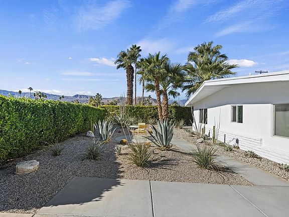 Mid Century Gem w/ Income potential, rarely available here in South Palm Desert! Completely remodeled & reconfigured main house & an entirely self contained ,fully appointed 1 bedroom ADU/guest house/Casita. Approx. 1100 sqft. 2 bed, 2 bath, SMALL main house (meticulously modernized & upgraded) featuring modern kitchen w/ southern views, & opens to the living room w/ a breakfast bar. The two baths in the main house have been updated with fresh tile and cabinetry, and primary bath opens out to the pool area. Approx. 500 sqft. 1 bed guest house/ADU ( built in 2023) w/ its own kitchen, laundry, living room, bedroom and bath. Imagine the opportunities...income booster, mortgage helper, or In-law suite. The outdoors is a serene backdrop with southern views from the front yard with privacy hedge and a large pool . Professionally landscaped with low maintenance plantings & artificial turf. Modernized, updated kitchen with southern views and Also at the pool area is an adjacent laundry room, toss those pool towels in after a swim. Three laundry areas; Guest house, Pool area and garage. Ideally located within walking distance to upscale El Paseo, and the award winning Washington Charter School. Amenities include water conserving landscape, a newer pool pump and filter, a tankless water heater, foam roof redone in 2024 on main house and countless upgrades. Easy expansion opportunity by creating 3rd bed/bath in garage area, and creating new carport/garage on side of house. NO HOA