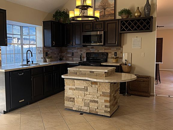 Make this your next home. Step into this inviting home featuring high ceilings, abundant natural light, and an open floor plan perfect for everyday living or entertaining. The spacious island kitchen with breakfast bar flows seamlessly into the main living area and offers plenty of room for cooking and gathering.Enjoy carpeted bedrooms for added comfort, including a split-bedroom layout for enhanced privacy. The primary suite is a true retreat, complete with its own fireplace, bay window, separate tub and shower, and dual vanities.Outside, you'll find mature trees, a storage shed, and a privacy fence, offering both charm and functionality. Located close to dining and shopping , this home combines comfort with convenience. Schedule your tour today. New pictures soon to come.