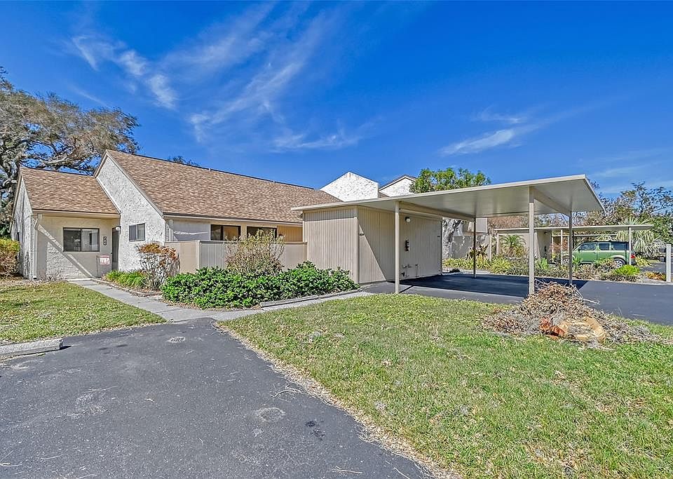 This is a WOW! Peaceful, wonderful 2BR/2BA with den area is ready for new owner. Turnkey furnished, updated kitchen with granite counters and Melnick white cabinets. Stainless steel appliances. Plank tile in all the living areas, carpet only in bedroom 2. Updated Bathrooms with newer showers. You will enjoy the cathedral ceilings and huge lanai with storage at the end overlooking the greenbelt. There is also a courtyard patio that is perfect for entertaining. Separate laundry storage room too. This is not an age restricted community. Bird Bay offers Community pools, clubhouse, pickleball, shuffleboard, fitness facility, library and on-site manager. Just minutes to the beach don’t miss this opportunity!