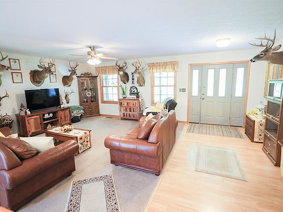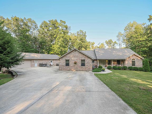 Looking for a spacious home that offers acres of privacy, yet is close to town? Check out this stunning, 3 bed, 3 bath, 3496 sqft brick ranch home over a fully finished walk out basement. This beautiful home sits on 17.24 of mostly wooded acres on a dead end road. This home is has been meticulously maintained and consists of high quality craftsmanship. The main level of the home consists of 3 bedrooms and 2 full baths. The primary suite includes his and hers walk-in closets, dual sinks and jetted tub. Also located on the main level is an open concept living/kitchen/dining area and includes a large island. Sliding doors lead to a partially covered back deck perfect for relaxing and enjoying views of nature and the abundant wildlife. There is also an office, large laundry room and plenty of closets on the main level of the home. The basement offers a massive living space, an additional full kitchen, full bath, and 3 additional rooms complete with closet/storage areas. These areas could be used for a variety of purposes. The expansive 8 1/2' finished ceilings add to the open, spacious feel. This area also includes a sliding door leading to partially covered patio, great for entertaining! As if this isn't enough space, there is also an attached 2 car garage and a separate 60x40 detached garage. In addition to additional garage space, the detached garage also includes 529 sqft of finished living space. The apartment includes a full bath, kitchen, bedroom, and living room, and its own HVAC system. Possibilities for this space are ENDLESS. Currently being used as an at-home office. The property consists of 3 separate parcels, giving an owner many future options. The home sits on 7.56 acres, there is a 4.69 acre tract adjacent to the north, and a 5 acre tract adjacent to the south. The home and the detached garage had new roofs installed in May 2024. Basement updated in 2024 as well with additional rooms added. Whether your'e and outdoor enthusiast, or simply trying to escape to your own private retreat, this property is truly a must see! Schedule a private showing today.