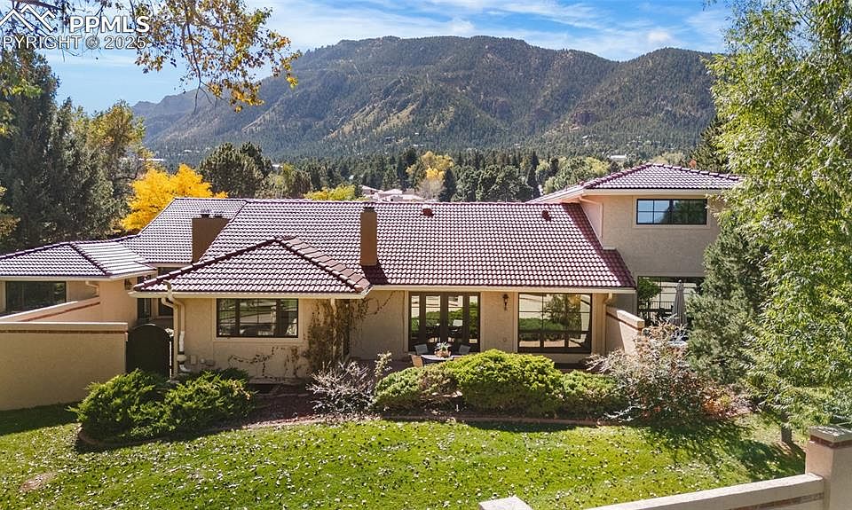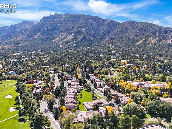 Tucked within the exclusive Broadmoor Heights gated community, this ranch-style townhome embodies timeless Colorado sophistication. Perfectly positioned to capture sweeping views of Cheyenne Mountain from the front and the Broadmoor Resort Golf Course from the back, the home is surrounded by natural beauty and quiet prestige. Step inside and experience effortless refinement, where vaulted ceilings with exposed beams and rich finishes create a sense of distinction and warmth. Every detail feels intentional, from the natural light that fills the space to the seamless blend of comfort and craftsmanship. The open main level flows with ease, offering an inviting setting for entertaining or relaxed daily living. The kitchen, dining, and living areas connect effortlessly. The primary suite provides a peaceful retreat with a private patio perfect for morning coffee or an evening glass of wine as the sun dips behind the mountains. A secondary bedroom suite and a flexible office complete the thoughtful main-level design. This versatile office space can easily serve as a third bedroom on the main level or a hobby room, offering the ease of genuine single-level living with thoughtful versatility. The lower level impresses with scale and possibility. A stylish wet bar and guest suite anchor the space, ideal for customizing into a recreation haven, art studio, fitness center, and/or home theater. Its openness and size is rare in many low-maintenance gated community homes. Every element of this home speaks to quiet elegance and ease, allowing you to fully enjoy the Broadmoor lifestyle- golf, dining, and resort amenities just moments away. Nestled at the private back of the community, this residence offers both peace of mind and the prestige of one of Colorado Springs’ most coveted addresses.