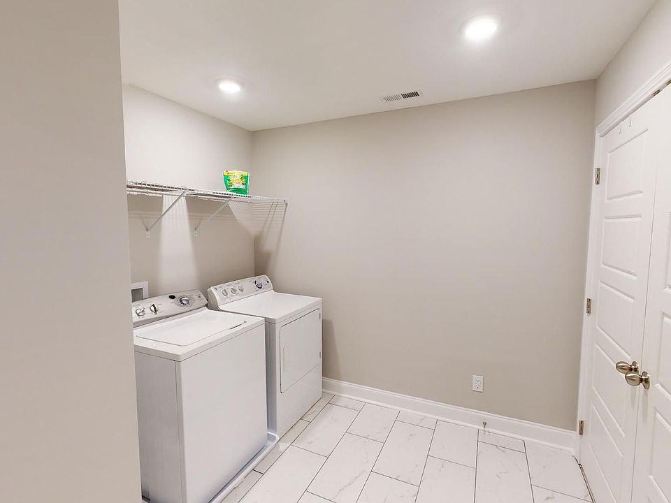 Stylish barn doorModern detailsFarmhouse sinkGenerously sized laundry roomUpgraded finishes