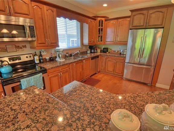 Beautiful 3 bedroom, 2 bath, with nearly 1800 square feet in an established Lynden neighborhood. Spacious, single level home with open floor plan, tall ceilings, warm wood flooring, fireplace, crown molding and ceiling fans. Open kitchen boasts custom cherry cabinetry, granite counters, stainless appliances and large island overlooking the living and dining areas. Master suite with jacuzzi tub, separate shower and walk in closet. Enjoy the large, level partially fenced yard with patio.
