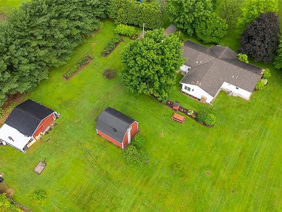 Enjoy Country Serenity without sacrificing access to schools and amenities. Charming brick ranch sitting far off the road nestled on 3.47 acres in Bazetta Twp. Lakeview school system. Mature trees and plenty of room for gardening. Blueberry bushes, pear and peach trees and even rhubarb. Home features a well desired large kitchen with plenty of counter space and open dining room. Fabulous family room with beautiful brick fireplace leading out to a large sunroom for plenty of natural sunlight. Nice size living room. 3 bedrooms and 2.5 baths. Laundry hook ups on first floor. Partially finished clean basement with wood stove and pool table! 2+ car garage and a handy half bath. Newer furnace, central air, electric panel with in last 2-4 years. Large 2 story barn with loft area and wood burner. Also, a nice outbuilding with lean-to for multiple purpose use. 1 Year Home Warranty is an additional bonus. Don't miss out on this one! Definitely worth it to schedule a showing to see if it can check all the boxes!