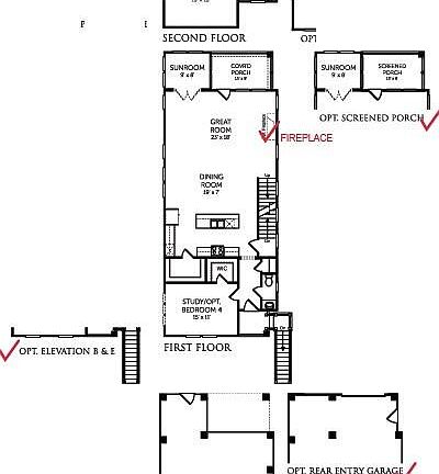 - Room types: Great Room, Living/Dining Combo, Sun Room, Great, Laundry, Pantry, Study, Sun