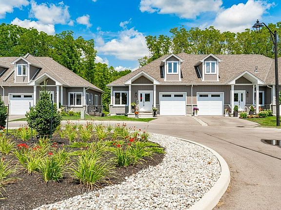 Carefree lifestyle a stones throw to the lake! Located at the end of a cul-de-sac backing onto wooded area; 1 of only 6 in the complex in this highly desired spot. INCREDIBLE backyard area for peace & quiet. Fully upgraded 3 bedroom, 2.5 bath END UNIT townhome featuring impressive main floor primary suite. Soaring ceilings greet you upon entering the stunning open concept main floor. The generous living room features a gas fireplace and tons of natural light from many oversized windows. An expansive open dining area can accommodate a table of practically any size. The dream kitchen is absolutely breathtaking with massive island, tasteful timeless cabinetry, quartz counters and SS appliances. Massive glass doors overlook your incredible backyard oasis complete with the perfect sized deck and poured concrete patio, the ideal place to relax in comfort for your morning coffee or evening glass of wine. The primary bedroom tucked away at the rear of the home's main floor for privacy features a large walk-in closet and beautiful 3 pce ensuite with glass walk-in shower. Grand oak staircases with custom carpet runners lead you up or down. Upstairs features 2 huge additional bedrooms and a 3pce bath. You may even catch glimpses of the lake from the front bedroom window! The large wide open basement with tall ceilings, multiple large windows and bathroom rough-in is a blank canvas for your ideas. Luxury plank flooring throughout, stunning light fixtures, custom window coverings, main floor laundry and powder room, attached garage + too many upgrades to list complete this fine home. True one level living can be yours here if you desire. Situated in idyllic Port Dover known for it's stunning beach, quaint downtown, outdoor recreation and easy access to city amenities in nearby communities. Walk or bike to downtown and beach! The ultimate beach town lifestyle can be yours. Book your private tour today!