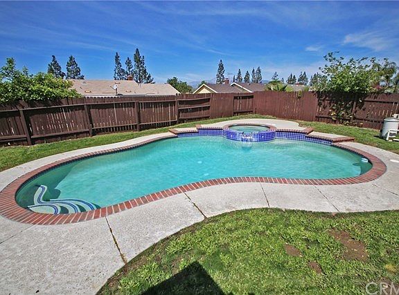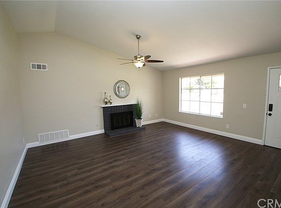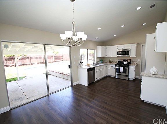 Stunning single story POOL home on a quiet Rialto cul-de-sac! Nicely remodeled and treated to a fresh coat of paint inside and out. Rich dark wood laminate flooring flows throughout the living areas, and bedrooms are carpeted with ceiling fans to keep you cool on hot days. Gather around the inviting gray brick fireplace in the spacious living room that sits under vaulted ceilings, giving the space an open feel. Further on is the dining area and updated kitchen, which boasts new stainless steel gas range, microwave, and dishwasher, white panel cabinets, and gorgeous quartz counters. Framed mirrors, updated fixtures, and vanities add charm to the upgraded bathrooms. The back yard is perfect for entertaining - relax by the sparkling pool with attached spa, barbecue in the covered patio, and play on the lush lawn!! Short distance to Downtown Rialto, local schools, and Historic Route 66. Make this yours today!
