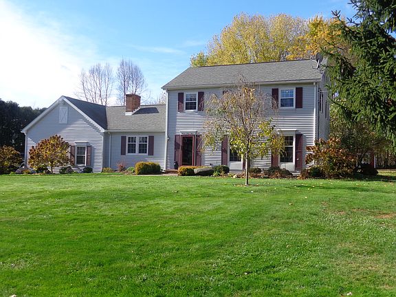 Welcome to space aplenty and stylish, easy-care living in this classic Colonial. Step inside the center hall as wood flooring welcomes you with a sleek, warm surface that is easy to maintain and clean. You???ll enjoy its desirable layout generously spread across two levels, from traditional living and dining spaces with an uninterrupted flow to a modern and well-equipped eat-in kitchen where storage is a dream. Raised panel cherry cabinetry and rich granite countertops afford an abundance of storage space and food preparation surface and surround the included stainless appliances. A bank of doors in the sunroom open to a sizable timber deck, creating summertime living space and a seamless transition between indoors and out. Enjoy sunny afternoons on the open-air deck or rainy days under the covered portion, shielded in privacy from a perimeter of trees. A vanity/sink area seamlessly integrates the owner bedroom and en-suite bathroom. Partially finished lower level with second fireplace.