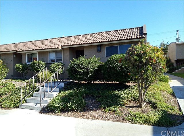 Single story end unit condo !!! Move-in Ready. Located in the private and gated community of Mira Vista. This property boasts an excellent floor plan. With 2 cozy bedrooms and 1 bathroom this home could be a starter home and would be ideal for a first-time home buyer. Convenient location nearby shopping centers, restaurants, and other services. Accessible by either 57 or 60 freeway. Very nice neighborhood and the community features a pool. You will love this unit!