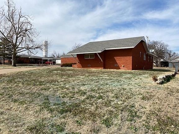 This is a spacious brick home on a corner lot located in Mountain View, OK. Quality construction and in good condition. The home features 2 1/2 baths, formal dining room, enclosed patio room and a large master bedroom with built in cabinets.
