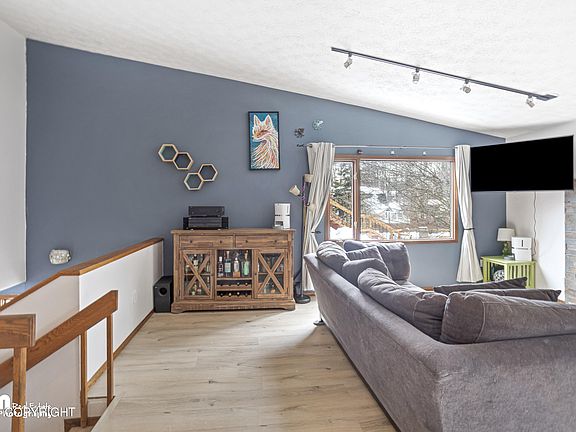 You will love this light and bright home in a convenient South Anchorage cul-de-sac location. Vaulted ceilings, beautuful remodeled kitchen, Southern exposure for lots of light, freshly painted interior, fenced yard, RV parking, upstairs bedrooms will have new carpet installed once pets are out. 95% efficient furnace and on demand water heater to increase energy efficiency.