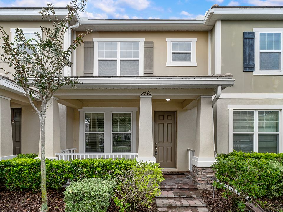 Like-new townhouse in the desirable Lake Burden community! This beautifully maintained 3-bedroom plus den/office, 2.5-bath home offers a comfortable and functional layout perfect for modern living. The kitchen features granite countertops, stainless steel appliances, and plenty of cabinet space. Enjoy ceramic tile flooring throughout the first floor and cozy carpet upstairs. The primary suite includes a walk-in closet and an en-suite bathroom. Washer and dryer are conveniently located upstairs. Outside, a private courtyard separates the home from the detached 2-car garage ideal for outdoor dining or relaxing in the evenings. Lake Burden is a sought-after community offering tennis courts, playgrounds, and scenic walking paths around the lake. Located in the heart of Windermere, residents enjoy easy access to top-rated schools, local shops, restaurants, and major highways. Just minutes from Disney, Hamlin Town Center, and Winter Garden Village, this home combines convenience with a peaceful suburban setting. Freshly painted and move-in ready this one is a must-see!