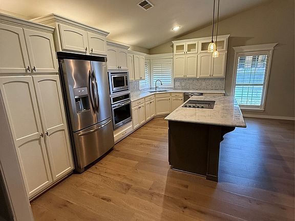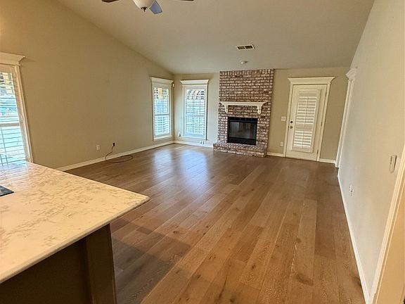Beautiful home on corner lot in the heart of Tulsa! Built in 1996, this well-maintained home offers three bedrooms, two bathrooms, and approximately 1,993 sq ft (per Courthouse). You'll love the two spacious living areas, each featuring its own cozy fireplace. The open kitchen is a standout with its white cabinets, granite countertops, stainless steel appliances and plenty of storage. This home features engineered hardwood flooring throughout the main living space, with carpet in the bedrooms that will need to be replaced, allowing you to add your own personal touch. The air conditioner compressor was replaced this year, offering peace of mind for the next owner. Conveniently located near shopping, hospitals and dining options, this charming property sits in The Woodlands subdivision within the Union School District. This home is full of character, warmth, and potential.