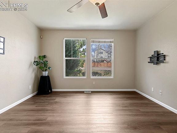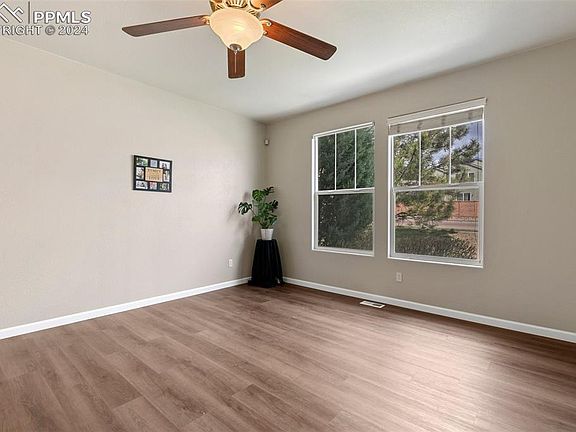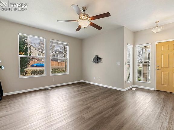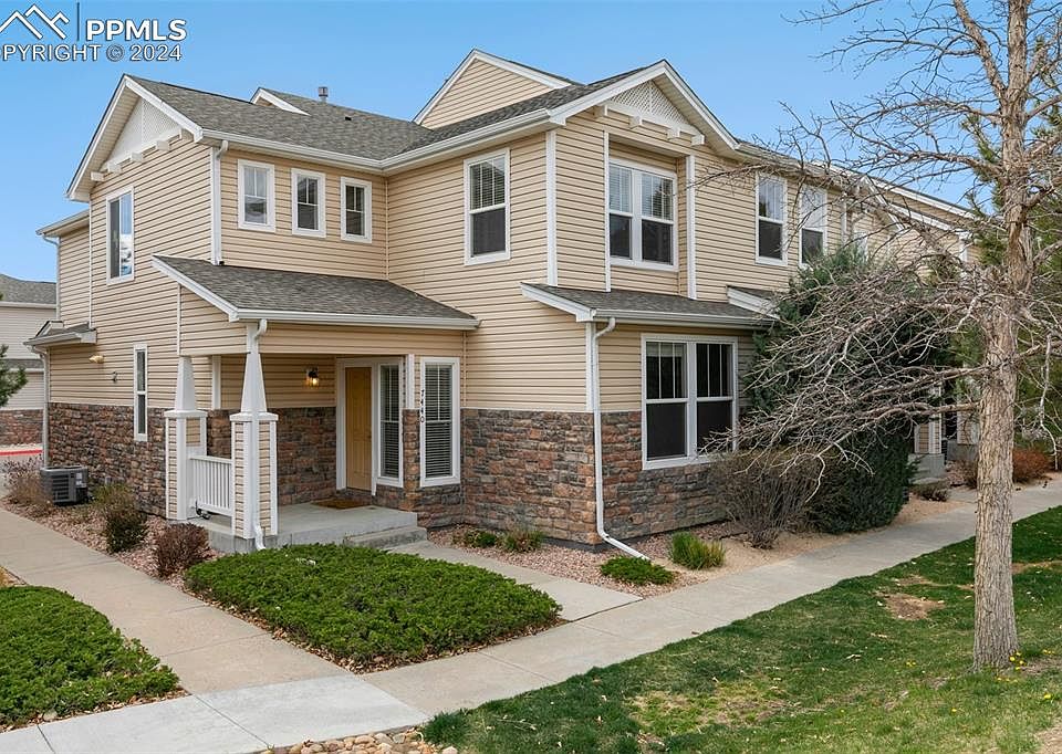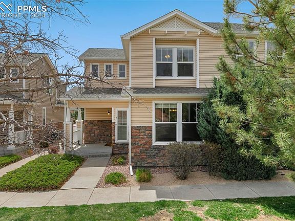 Lovely 2-story townhome with 3 bedrooms, 3 bathrooms with an attached oversized 2 car garage! This is an ideal location as you are within walking distance to trails, parks, soccer fields, a community garden, shopping and more! You will love this home as soon as you walk in and notice all the NEW Solid Surface Flooring on main level and in the Primary Bedroom. The main floor includes a foyer, spacious family room, dining area, kitchen, 1/2 bath, and laundry area. The kitchen has a tremendous amount of counter space and cabinets. Upstairs there are 3 bedrooms: the primary bedroom is an ideal retreat with an attached 4 piece bath and walk-in closet. The additional 2 bedrooms have their own full bathroom. No need to be concerned about storage with the under the stairs, dedicated extra storage areas in the garage, and even the crawl space. NEW A/C was just installed so you are ready for the summer and a NEW Hot Water Heater long showers. All this is within minutes to Ft Carson, I25, easy access to Peterson, and Schriever.